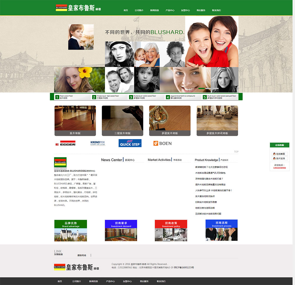 皇家布魯斯赫德-BLUSHARD國(guó)際地材中心整合南北六大工廠,致力打造中國(guó)**很環(huán)保木地板國(guó)際品牌。旗下:布魯斯赫德,BLUCEHARD,德佳,廣森隆,易家廣瑞,富利佳,歐格萊,嘉櫻等,各系列覆蓋實(shí)木,三層實(shí)木,多層實(shí)木,強(qiáng)化復(fù)合,竹地板,拼花地板,軟木地板等所有的木地板品種。世界資源,全球共享。不同的世界,共同的BLUSHAD。