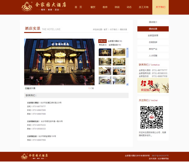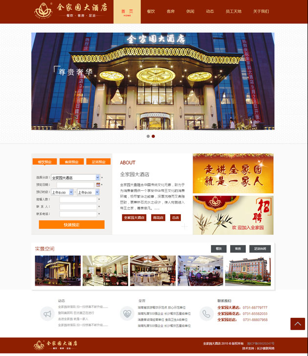 全家園大酒店按五星級標準建造的集客房、餐飲、康樂為一體的綜合型高端商務(wù)精品酒店 。網(wǎng)站上不僅展示了全家園大酒店,還展示了全家園雨花店、老店,及全家園實業(yè)旗下的四一農(nóng)業(yè)、濱江會所等??蓪崿F(xiàn)在線的餐飲預(yù)定、客房預(yù)定、足浴預(yù)定,及行政管理中的人才招聘等。