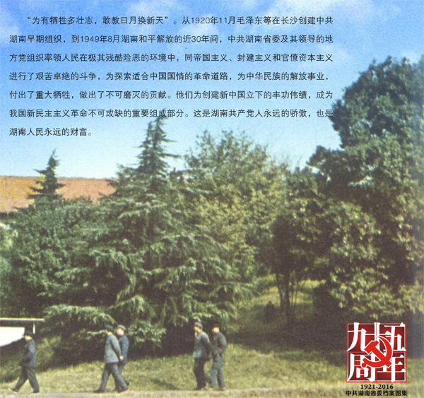 “為有犧牲多壯志,敢教日月?lián)Q新天”。從1920年11月毛澤東在長(zhǎng)沙創(chuàng)建中共湖南早期組織,到1948年8月湖南和平解放,中共湖南省委及其領(lǐng)導(dǎo)的地方黨組織率領(lǐng)人民在極其殘酷險(xiǎn)惡的環(huán)境中,進(jìn)行了艱苦卓絕的斗爭(zhēng),為探索適合中國(guó)國(guó)情的革命道路,為中華民族的解放事業(yè),做出了不可磨滅的貢獻(xiàn)......