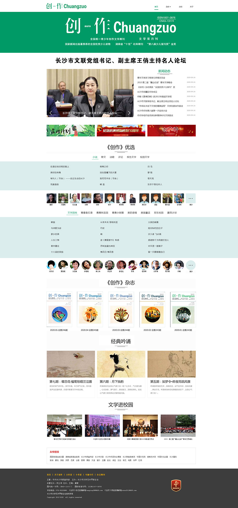 此次承接的建設任務有:老網(wǎng)站積淀的作品遷移,新版多網(wǎng)合一(PC版、手機版、嵌入微信公眾號)的開發(fā)設計,創(chuàng)建了:《創(chuàng)作》優(yōu)選、經(jīng)典吟誦、文學進校園、大作家小作家、露珠計劃等功能版塊。敬請期待!