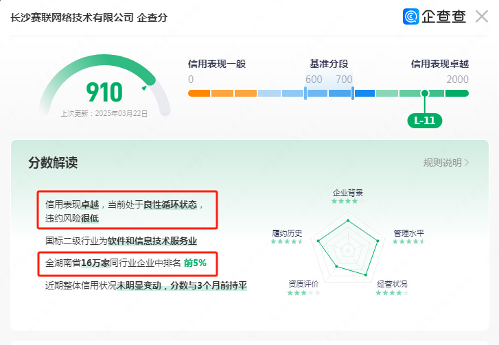 長(zhǎng)沙賽聯(lián)網(wǎng)絡(luò)技術(shù)有限公司·企查分: