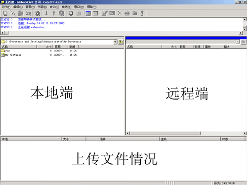 左邊是本地端,右邊是遠(yuǎn)程端,這時(shí)用戶可以由本地端上傳文件到遠(yuǎn)程端了,或者從遠(yuǎn)程端下載文件到本地端了。