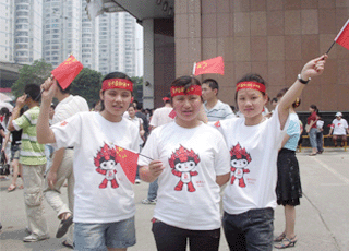 由公司組織,全體職員統(tǒng)一著裝,放假半天,前往火炬?zhèn)鬟f線路搖旗吶喊!為中國加油!為北京加油!為湖南加油!為長沙加油!為奧運加油!